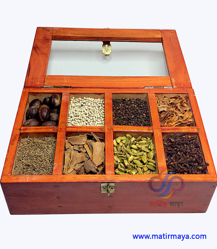 • তৈরীর উপাদানঃ এইটা মেহগুনি কাঠের তৈরি মসলা বক্স।