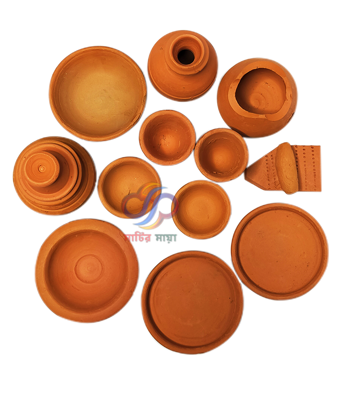 • সুবিধাঃএক সেটে আছে থাল, গ্লাস, বাটি, কলস, পাতিল, চুলা ও পাটা ইত্যাদি।
