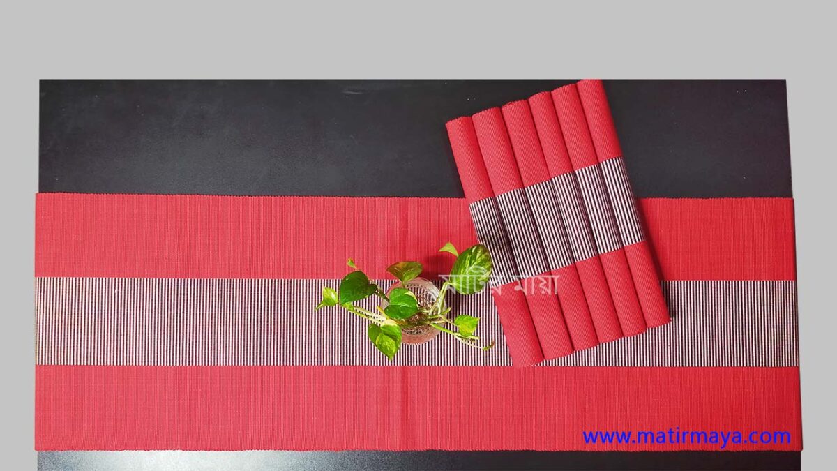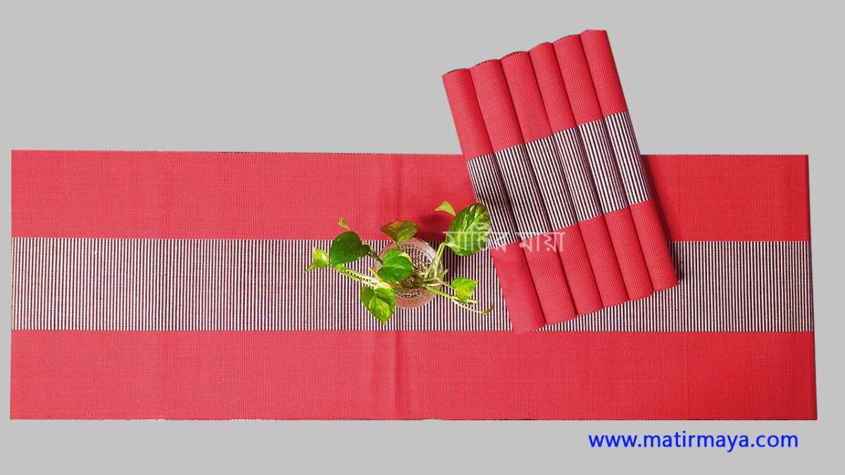 শতরঞ্জির টেবিল রানার ও ম্যাট || Sataranjee Table Runner 1 pcs & Matt 6 pcs Red White
